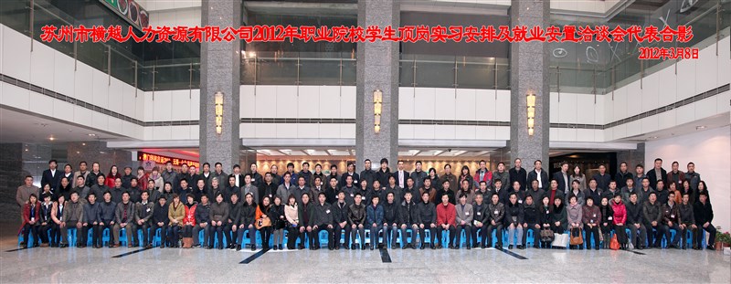 2012年3月7日-10日:蘇州市橫越人力資源有限公司2012年職業(yè)院校學生頂崗實習安排及就業(yè)安置洽談會在蘇州水洲飯店舉行。80余家職業(yè)院校及30家企業(yè)共260余名代表與會。蘇州市、各區(qū)勞動局、蘇州工業(yè)園區(qū)人力資源中心部分領導到會交流、指導。與會代表與我公司全體員工共同度過了緊張熱烈、友好愉快的7天時光。60余家職業(yè)院校和企業(yè)領導來函、來電祝賀。